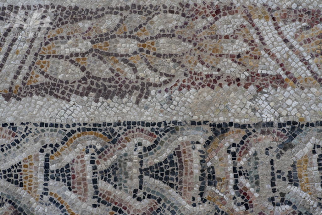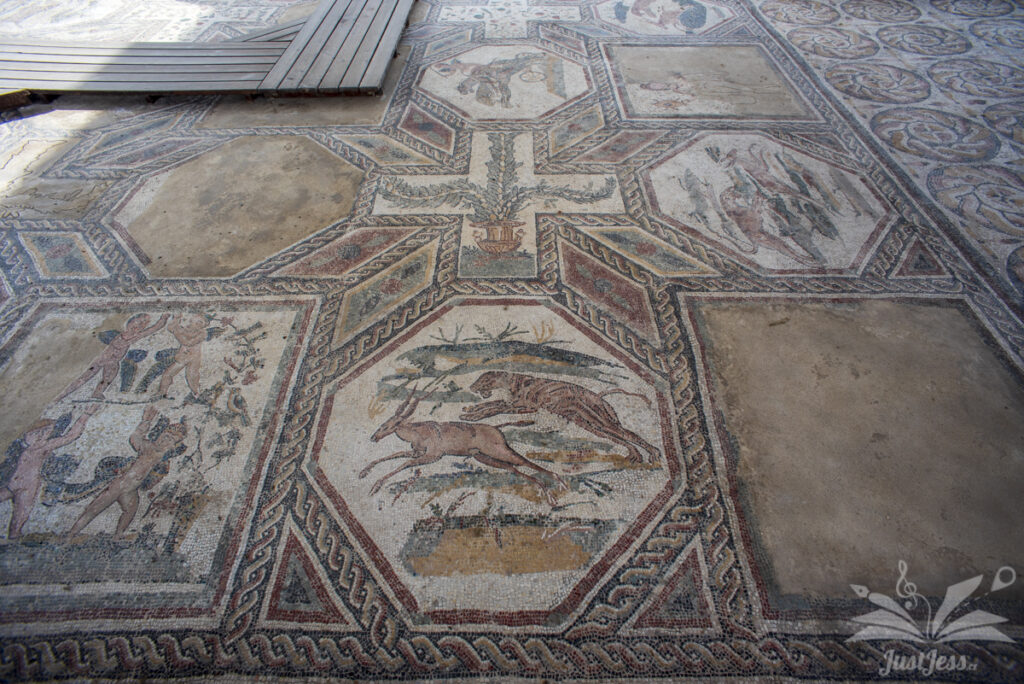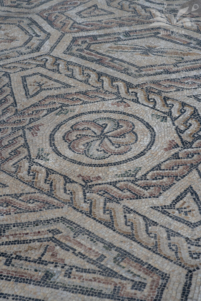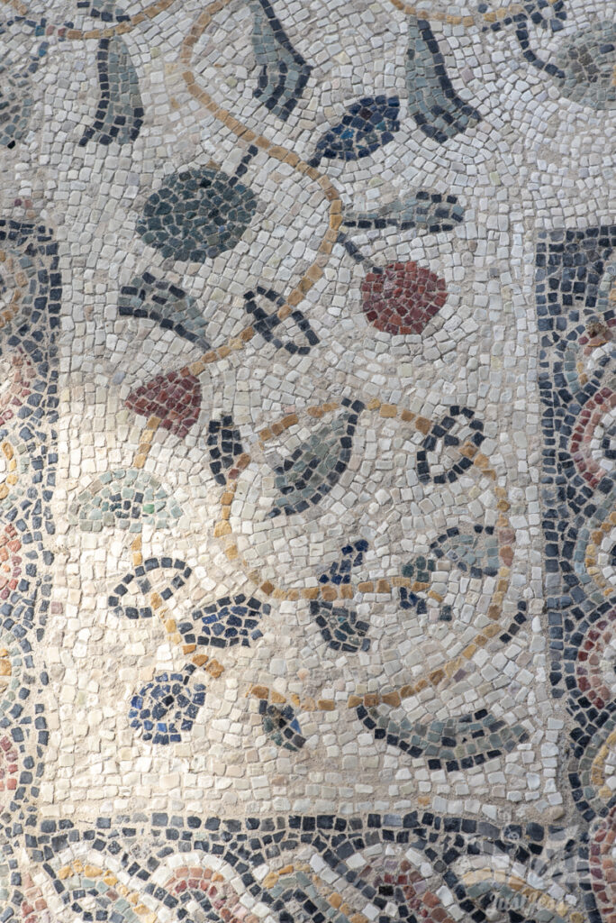 We are visiting the remains of the 1st century Roman villa in Desenzano and I am fascinated by the intricate patterns and motifs that form the floor mosaics.